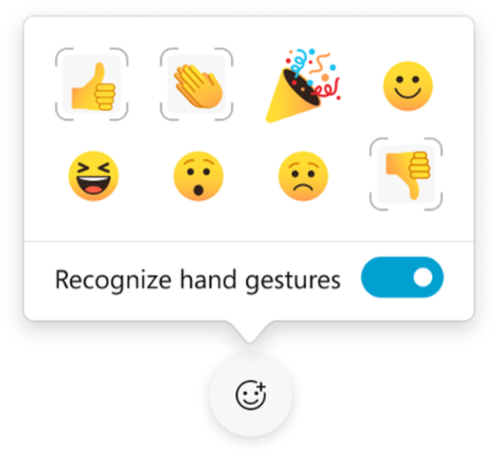 体に不自由があって表情を浮かべたり手でジェスチャをしたりできない場合は、手動で絵文字を選択できます。[手のジェスチャを認識する(Recognize hand gestures)] ボタンをオフにして、表示したい絵文字をクリックするだけです。