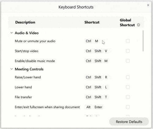 Webex ではキーボードのショートカットがサポートされています。体が不自由な人でも、マウスの代わりにキーボードを使って操作したり機能を利用したりすることができます。また、時間の節約やマウスのクリック回数の削減にもなります。