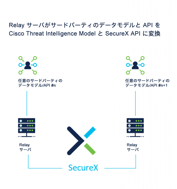 最近では、これらのリレーを内部に組み込みました。シスコがリレーをホストすることにより、お客様が自社の SecureX 環境にリレーモジュールを導入する方法に比べシンプルにするのが目的です。シスコが提供するサードパーティのリレーモジュールの場合、リレーサービスをダウンロード、設定、起動する必要はありません。