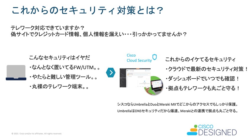 これからのビジネスの方向性、アジャイルに即した、しっかりとイケてるセキュリティ対策を施しませんか?Umbrella や Duo、Meraki で無料トライアルもご提供中です!