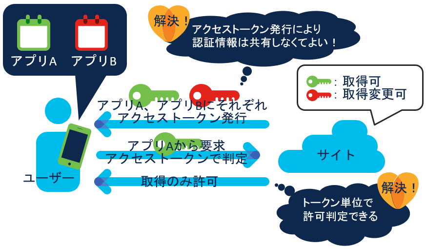 このアクセストークンにより「認証情報を公開せず」に、許可判定を行うことが可能になりました。