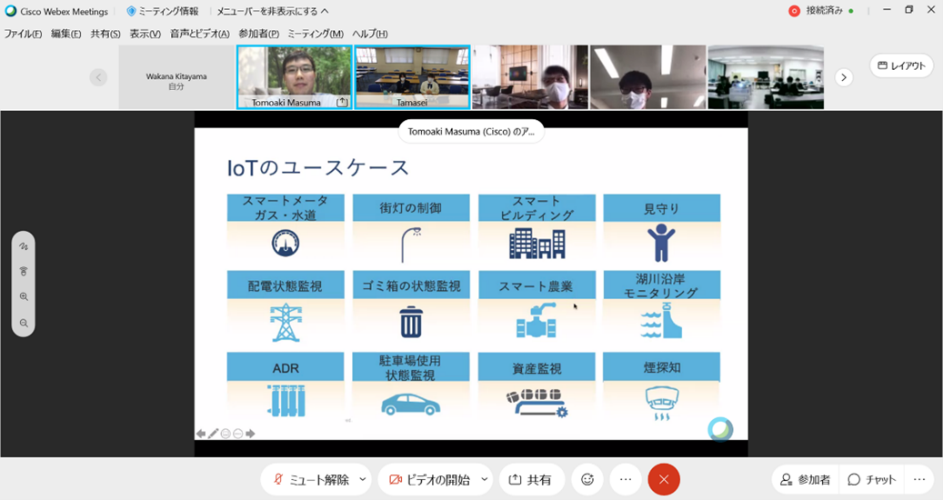 高校生からは「Society5.0 が実現した場合、新たに増える仕事はどのようなもの?」や「日本の街の IoT が他国よりも進んでいない主な理由は?」といった様々な質問があり、未来を担う高校生に IoT の考え方への理解と関心を促した授業となりました。