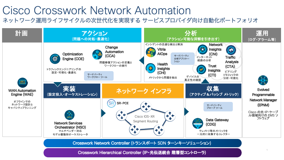 そこで本ブログシリーズでは「Crosswork 入門ガイド」と銘打って、Cisco Crosswork の全体像と各アプリケーションがカバーするユースケースについてご紹介していきます。単なる製品紹介でなく、ユーザにとって最適なソリューションを見つけるお手伝いをすることを目的としています。