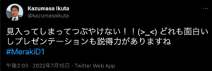 最後に、本イベントの企画運営のみなさま、お疲れ様でした。特に本イベントをリードしながらも全窓口を一手に引き受けて業者のごとく貸出品の出荷や遅延連絡まで対応されたCisco Meraki片山さん、安定した本番司会とイベント進行事前チェックまで含めてCisco 岡﨑さん、田川さん、みなさま大活躍でした。その他いつもの裏方メンバーの多大な協力が本イベントを下支えしました。