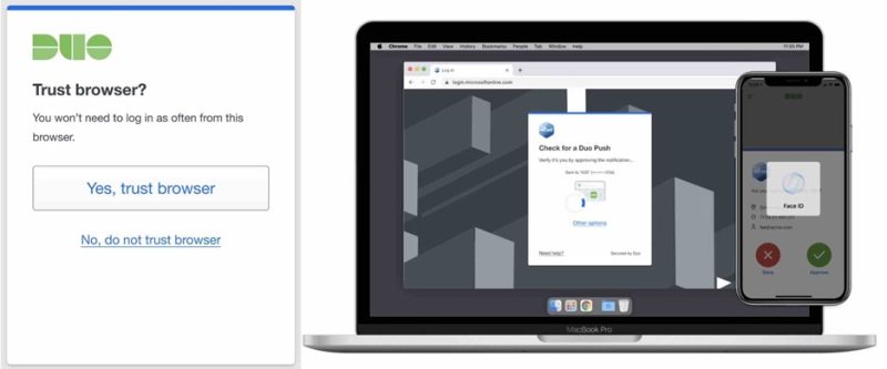 - 通常は生体認証による認証済み Duo Push で、ブラウザを信頼すると生体認証による Duo Push に変更