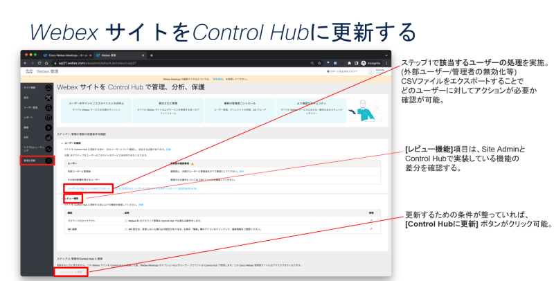 Site Admin管理からControl Hub管理へ更新するプロセスについて学びましょう。