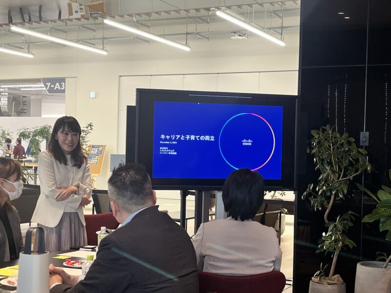 ビジネス上でのお取引やこのイベントの主旨に共感し、シスコからは小学生までのお子様を持つ社員がグループワークに参加させていただくことになりました。さらにWoC Japanのエグゼクティブスポンサーであり、シスコの執行役員である吉井 彩乃さんが、ご自身の経験やアドバイスについて講演を行いました。