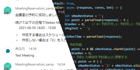 「初めての WebexAPI 活用」の第5回(最終回)になります。 第3回で bot の作成、第4回で Integration と API が活用できるようになったため、サンプルプログラムを参考に会議予約をしてくれる bot を作成します。 ※エンジニア向けの内容となっております