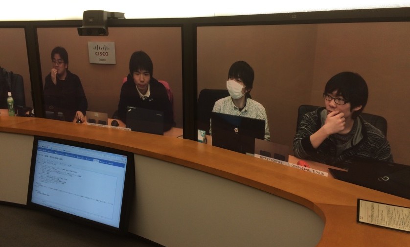 グローバル人材育成を目指して高校生がビジネス プランを競うコンペティション「TTBiz」(主催:公益社団法人ジュニア・アチーブメント日本、特別協賛:アクセンチュア株式会社)の最終戦が1月24日(土)25日(日)の2日にわたって開催されました。11月の中間報告会で指摘された事項に対し、3か国の学生達は協力しあいながら、決勝の場に臨みました。 初日は、全チームによるプレゼンテーションが行われ、2日目は勝ち残った 4チームによる決勝戦です。プレゼンテーションはすべてテレプレゼンス ルームで行われ、それぞれの国から日本の審査員に向かって発表します。テレプレゼンス システムにより、遠隔にいる学生たちの発表の緊張も伝わり、まるで日本にいる審査員と同じテーブルにいるかのような雰囲気で決勝戦が繰り広げられました。 優勝チームは、立命館宇治高等学校(日本)、Myung Deok Foreign Language High School (韓国)、Ngee Ann Polytechnic(シンガポール)の合同チームでした。