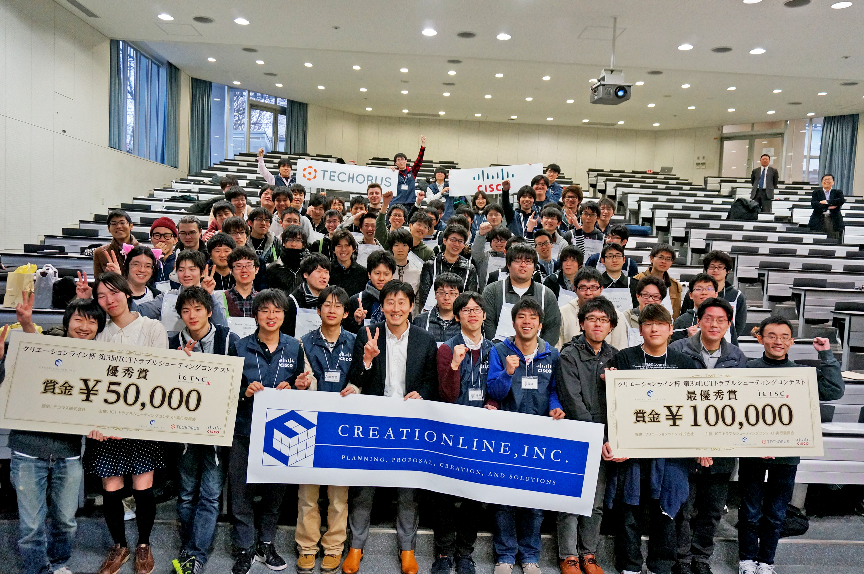 来る2015 年 3 月 13 日、「クリエーションライン杯第3回 ICTトラブルシューティングコンテスト」(以下、ICT トラブルシューティングコンテスト)が開催されます。これは、全国の専門学校生、大学生、大学院生を対象とした サーバ/ネットワークなどのインフラストラクチャーを対象にしたトラブルシューティング能力を競うチーム戦です。そして、競技参加者だけではなく、コンテストの企画・運営も学生が行っており、「学生の・学生による・学生のための技術コンテスト」と言えます。 (注)写真は前回の模様です。 シスコは、次世代のネットワーク エンジニアを育成する目的のもと、この「ICT トラブルシューティングコンテスト」に機材を提供しています。その模様を学生のシナリオ作成やコンテスト当日の様子を含め、4回に分けてレポートしていきたいと思います。 まずは、2月3日(水)に参加募集要項が発表されましたので、その概要をご紹介します。 ■問題 セッションごとに出題された問題を、限られた時間内で解いていきます。出題範囲はネットワークのみでなく Linux やセキュリティにも及びます。 <出題範囲> IPルーティング TCP/IPプロトコル データリンクプロトコル 無線LAN DHCP、DNS、Radius等サーバ PXEブート Apacheサーバ mySQLサーバ ■参加チーム構成 参加チームは、5名以下で構成されます。チーム戦ですので、問題解決のための情報交換など、メンバー同士でのコミュニケーション力も問われます。 ■審査基準