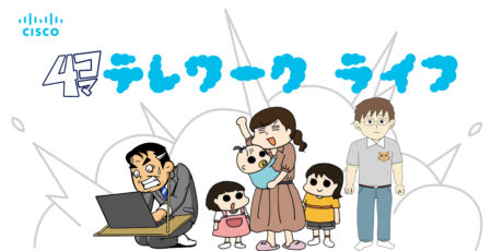 We are Cisco「 4コマ テレワークライフ」の第一弾松本ぷりっつさんの3作品はいかがでしたでしょうか。 そして今回は第二弾。松本ぷりっつさんからバトンを引き継ぐのは、ギャグマンガ家の登竜門である赤塚賞に入選されたおぎぬまXさんです。今回は、とある会社に勤める若手社員が主人公となり、人付き合いがあまり得意でない若手社員がテレワークを自分なりに試行錯誤しながら進めていく様子が描かれています。ぜひご覧ください。