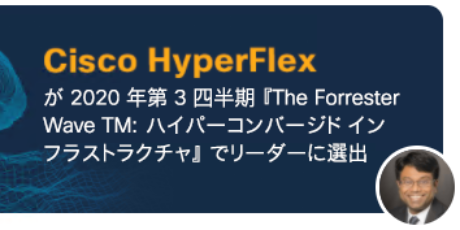 データセンター/仮想化Cisco HyperFlex が 2020 年第 3 四半期の『The Forrester Wave™:ハイパーコンバージド インフラストラクチャ(HCI)』レポートでリーダーに選出されました。HyperFlex は、ミッションクリティカルなエンタープライズ アプリケーションにも利用できる、安定性、堅牢性、信頼性に優れたプラットフォームです。Intersight SaaSと組み合わせれば、シンプルかつ直感的で柔軟なハイパーコンバージドソリューションが実現し、どこからでもアプリケーションとデータを管理・運用が可能です。
