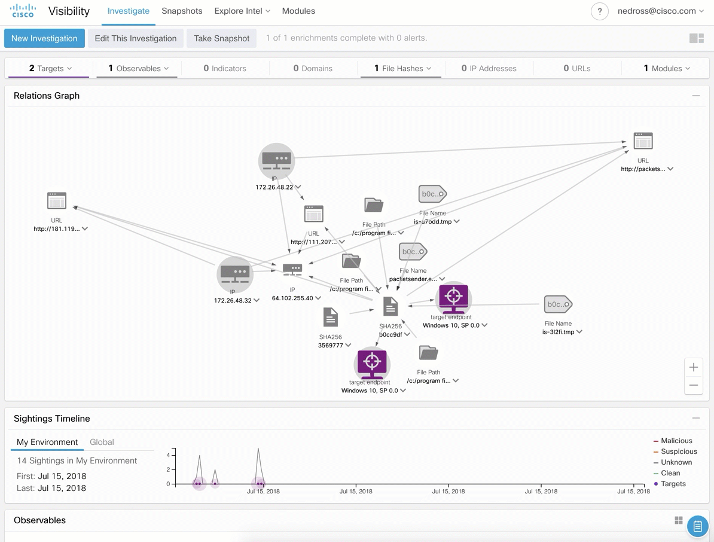 추가로 ‘무료’ 로 제공되는 SecureX Threat Response 기능을 이용 할 경우에 가시성 기반의 사고 조사까지 확장이 가능합니다.