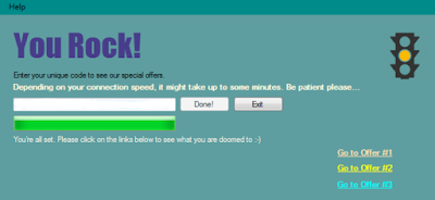 이 웹사이트는 데스크톱 어플리케이션을 무료로 다운로드할 수 있는 링크 3개로만 이루어져 있습니다. 이 어플리케이션은 가짜 인스톨러입니다. 일반 악성 프로그램 인스톨러와 달리 이 인스톨러는 사용자가 설치 사실을 알고 있기 때문에 몰래 설치를 진행할 필요가 없습니다. 아래 사용자 인터페이스를 보면 알 수 있듯이, 무언가에 의해 어플리케이션의 데이터베이스 액세스가 “중지”되었음을 나타내는 오류 메시지가 항상 뜹니다.