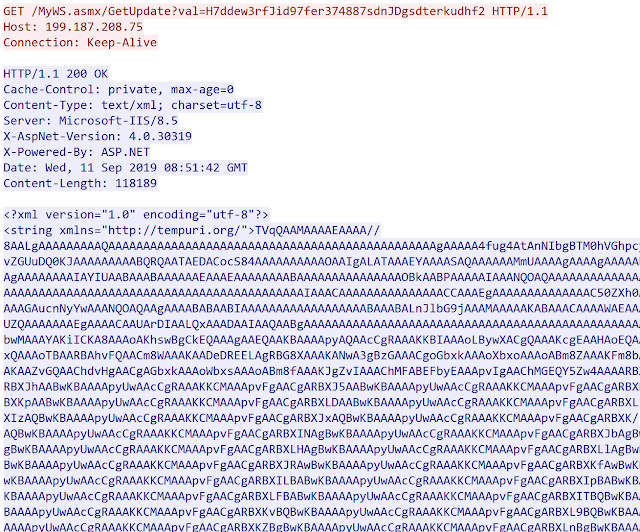 hxxp://199[.]187[.]208[.]75/MyWS.asmx/GetUpdate?val=H7ddew3rfJid97fer374887sdnJDgsdte