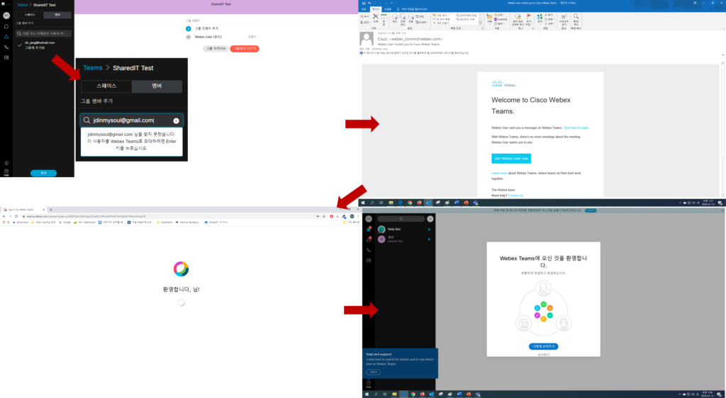 초대 -> 메일 확인 -> 참여 세 단계를 거쳐 간단하게 멤버를 추가할 수 있었습니다. 특히 초대받은 멤버가 별도의 Webex Teams 계정 혹은 Cisco 계정을 만들지 않았음에도 불구하고 바로 접속이 되는 것이 인상적이었네요.