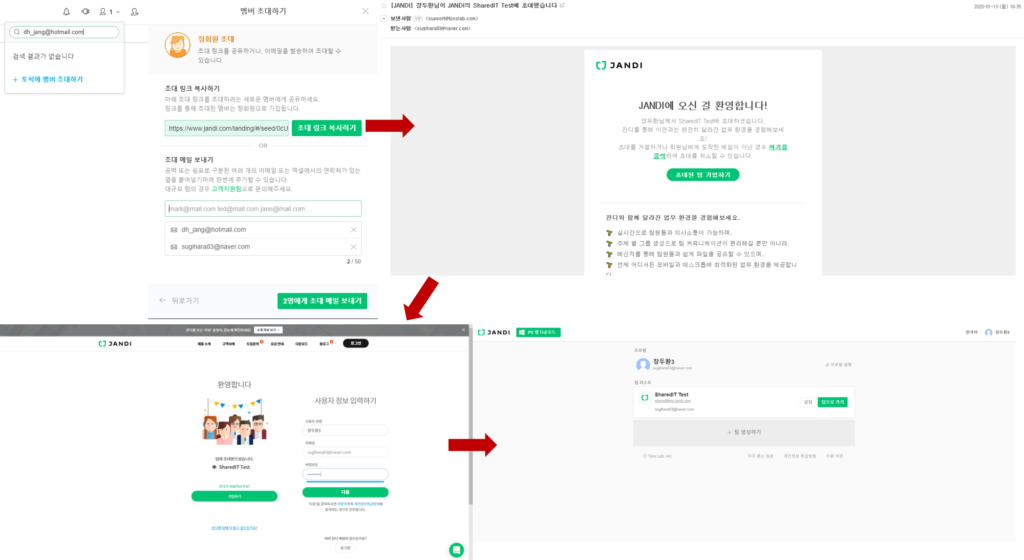 2) 함께 일할 멤버를 추가하는 과정이 얼마나 편리한가 : 멤버 초대, 계정 생성