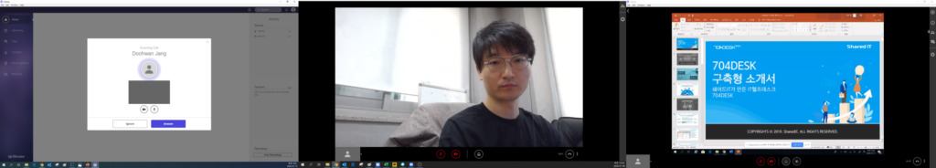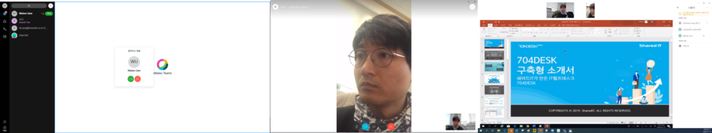 그런데 화질과 딜레이를 이렇게 이미지로 판단하기에는 무리가 있습니다. 그래서 3분이 조금 못되는 동영상을 준비했고요. 앞서 언급한 솔루션들의 화상 회의 화질과 화면 공유 시 딜레이가 어느 정도인지 판단하실 수 있을 것입니다.