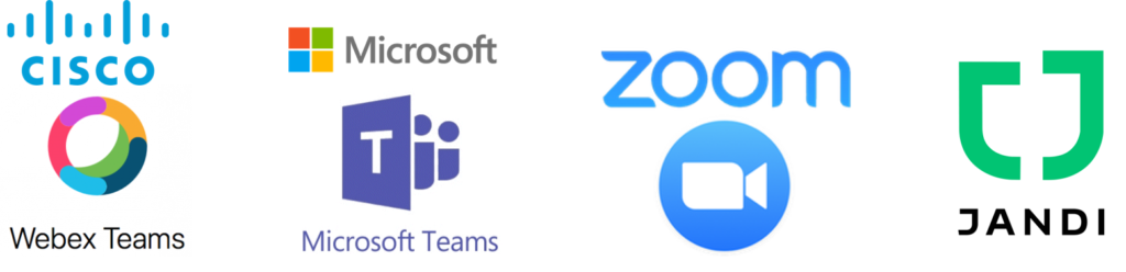 위에서 보셨던 Gartner 보고서의 가장 높은곳에 올라가 있는 상위 3개 회사 솔루션과 국내 회사 솔루션 하나를 더해 총 4개를 비교했습니다. 왼쪽부터 Cisco의 Webex Teams, Microsoft의 Teams, Zoom의 Zoom, 토스랩의 JANDI 입니다. 4개 회사 솔루션 클라이언트를 사용해 보면서 느낀 점들을 위에서 말씀드렸던 5가지 사항을 중심으로 풀어 보겠습니다.