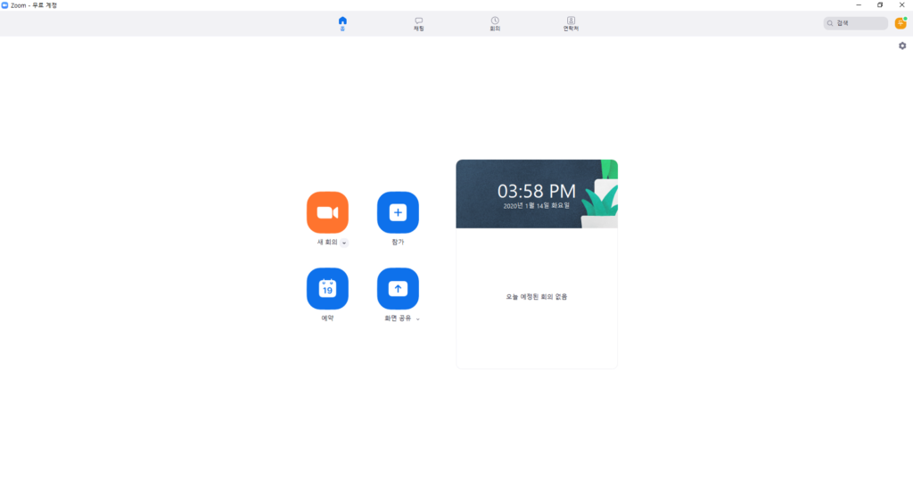 <Zoom 클라이언트 초기 화면, 아무런 가이드가 없음>