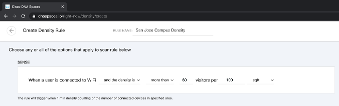 문제는 건물 내 인구 밀도가 낮더라도 사람들이 특정 공간에 모여 사회적, 물리적 거리 두기 가이드라인을 지키지 않을 수도 있습니다. Cisco DNA Spaces의 Right Now 앱을 사용하여 시설 내에서 이를 모니터링할 수 있습니다.