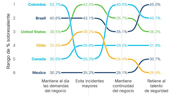 ¿Cuál es realmente el quid de estas diferencias en la resiliencia de la seguridad entre los países? ¿Es Colombia mucho más resiliente que México? ¿Las organizaciones en diferentes países tienen diferentes definiciones de lo que es la resiliencia y cómo perciben su éxito? Las razones detrás de estas diferencias a nivel de país se pueden atribuir a una variedad de cosas, incluida la madurez de la seguridad, factores culturales y otros parámetros organizacionales.