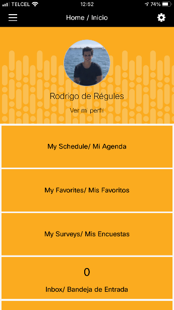 Empezando por lo básico, la página de inicio te permite consultar la agenda que armaste en el “Schedule Builder”, consultar aquellos temas que marcaste como favoritos, revisar tus encuestas, ver tus notificaciones y añadir notas.