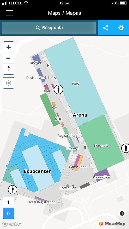 En los mapas podrás consultar todas las áreas con actividades en Cisco Live como los salones de las sesiones, el stand de cada patrocinador en el World of Solutions y la zona de DevNet.