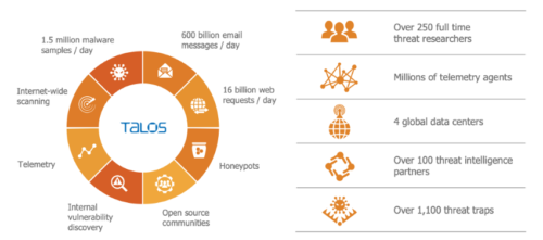 La ciberseguridad es clave para todo proyecto de SD-WAN, y Cisco como líder en el mercado de seguridad integra sus tecnologías avanzadas nativamente en la solución, automatizando el despliegue completamente. La unión de seguridad en sitio con el expertise de firewall, IPS (Intrusion Prevention System) , Antimalware y filtrado por URL, sumado a la experiencia de seguridad en la nube con Cisco Umbrella para detección de malware usando DNS y multiplicado a la capacidad de Cisco Talos como centro de investigación de amenazas globales, hacen a esta solución única. La Seguridad se basa en tener visibilidad y proactividad, y con solo conocer cómo Cisco Talos retroalimenta a nuestras soluciones de seguridad en casi tiempo real, nos permite tener confianza en la protección de los usuarios que van a salir a navegar a Internet directamente desde la branch.