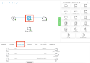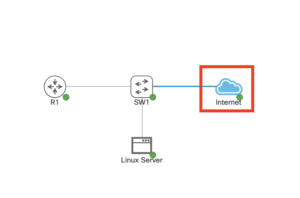 - As you can see you didn’t add an IP address instead you use DHCP, that’s because you added an external connector to the topology and it will work as a DHCP Server, DNS, and will simulate the Internet.