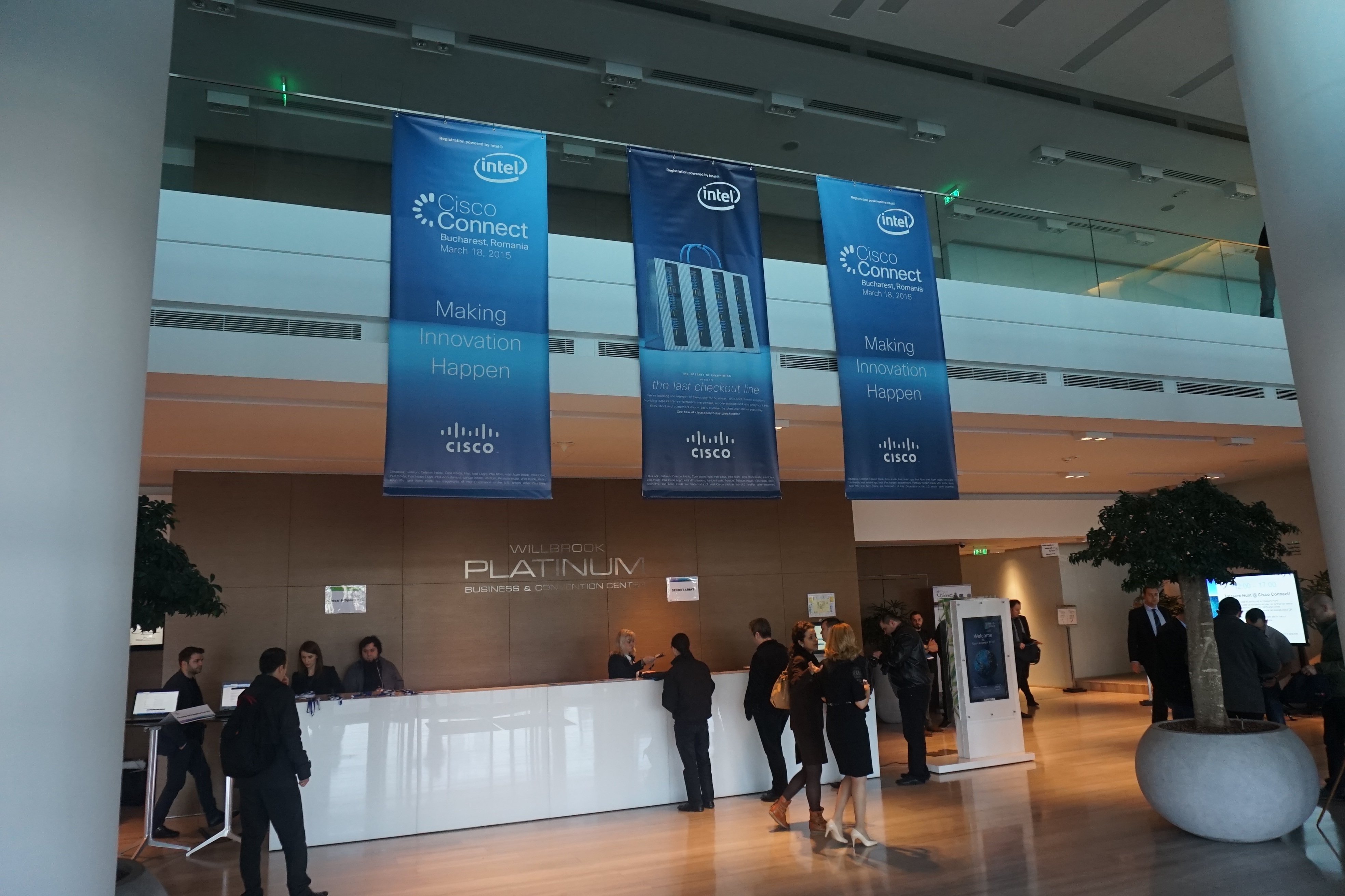 Buna dimineata, Este ora 9:20 si ne aflam la cea de a 3-a editie a Cisco Connect, care are loc la Willbrook Platinum Center. De aici vom oferi update-uri live…