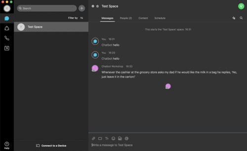 - You create a webhook that makes Webex Teams POST to that API when the bot receives a message.