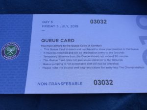 - There are several check points where you have to show your Queue card. If your number is out of sync with the other numbers around you, expect a one way trip to SW19’s Police Station.